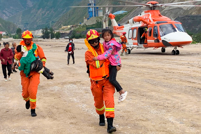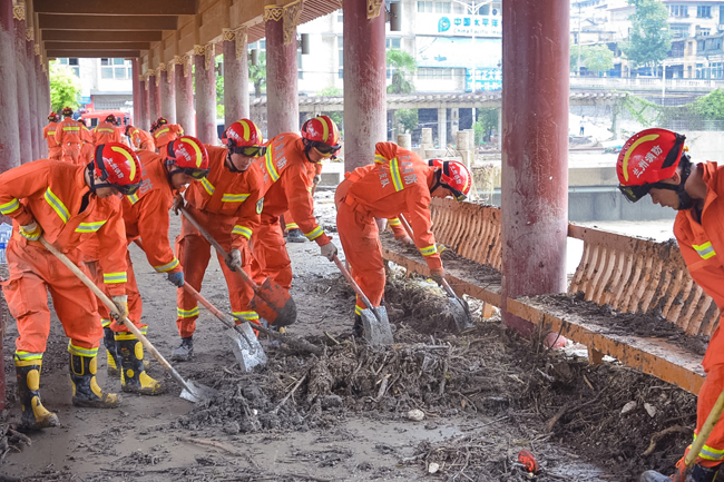 During the search and rescue, rescuers also assisted the people in the disaster area to level the site, clean up silt and road gravel to open channels. Hope never dies, search and rescue never stops. Against the background of heavy clouds, that orange figure resolutely walks on the banks of Baishui River, sending hope for life to the people in trouble.