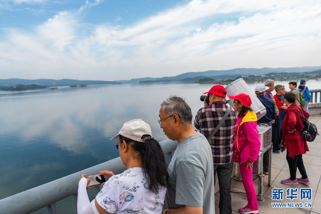 On May 20th, at Danjiangkou Reservoir in danjiangkou city, Hubei Province, tourists were enjoying the beautiful scenery of the reservoir area. Xinhua News Agency reporter Cai Yang