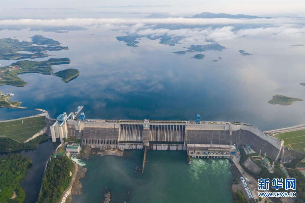 This is the view of Danjiangkou Reservoir in danjiangkou city, Hubei Province, which was taken on May 20th. On the same day, the water level in front of the Danjiangkou Reservoir dam was 160.98 meters, which exceeded the summer flood control limit, which means that there is enough water in the water source area of the middle route of South-to-North Water Transfer Project to be transferred to the north (photo of drone). Xinhua News Agency reporter Cai Yang photo