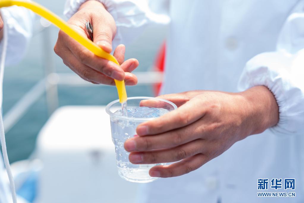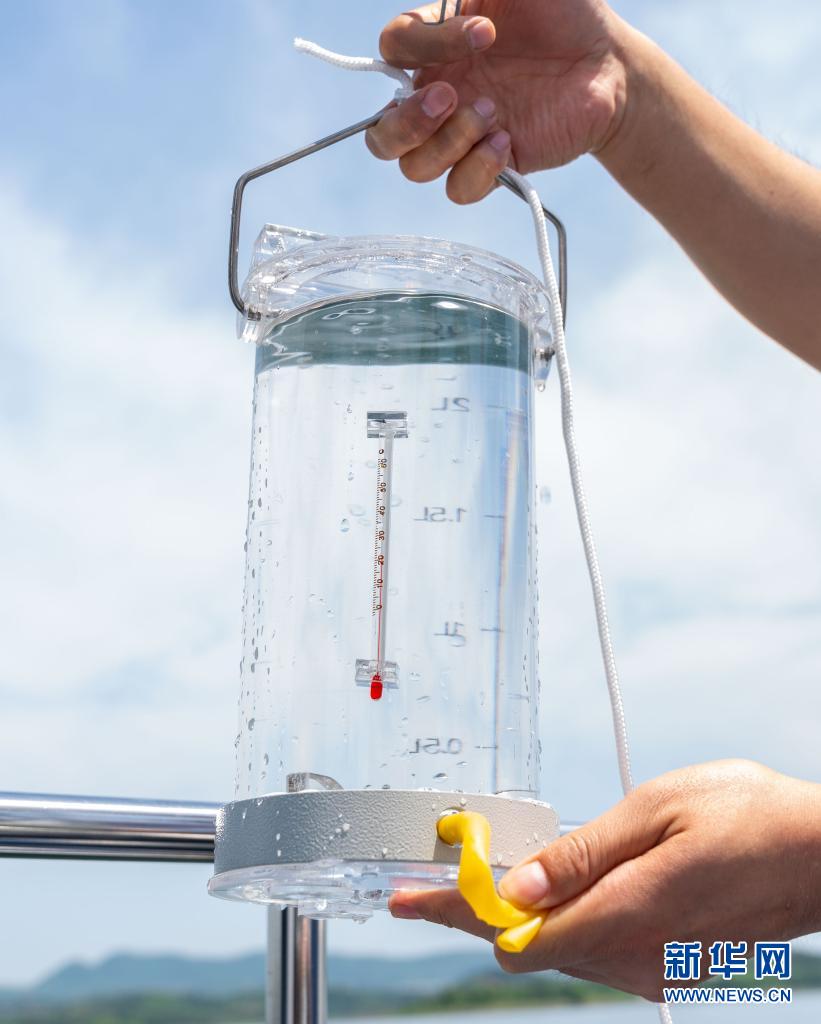 On May 20th, the water quality monitoring personnel in the reservoir area of the Middle Route Water Source Company of South-to-North Water Transfer Project showed the collected water samples at the dam front monitoring section of Danjiangkou Reservoir in danjiangkou city, Hubei Province. Xinhua News Agency reporter Cai Yang photo