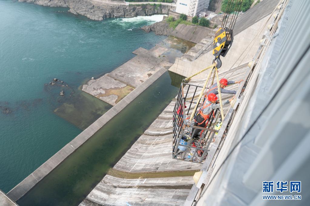 On May 20th, in Danjiangkou Dam, danjiangkou city, Hubei Province, the staff inspected the dam body. Xinhua News Agency reporter Cai Yang photo